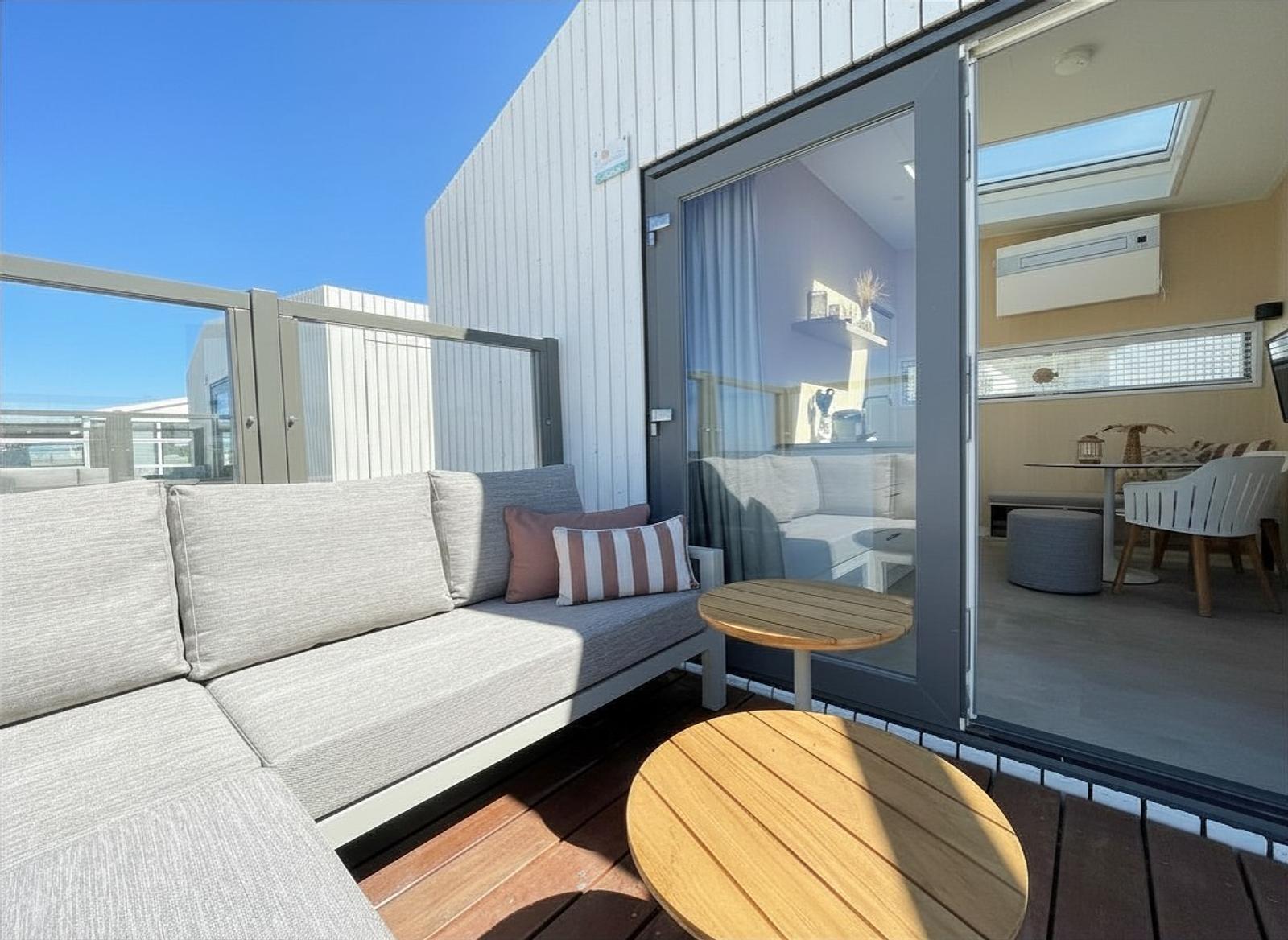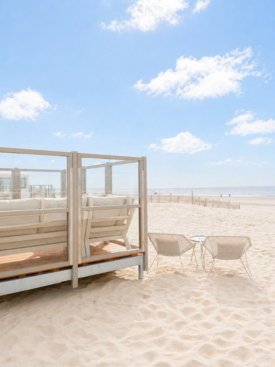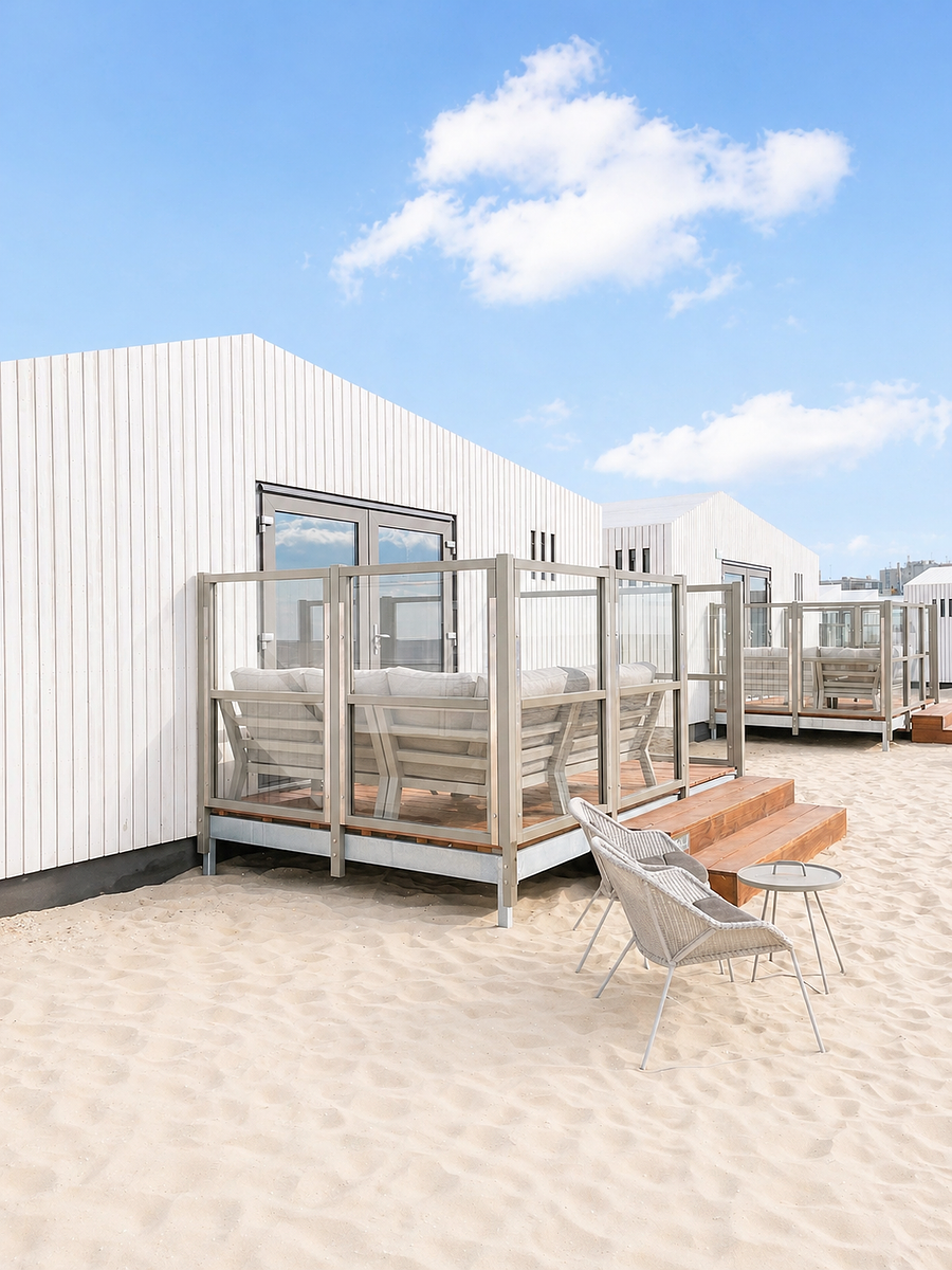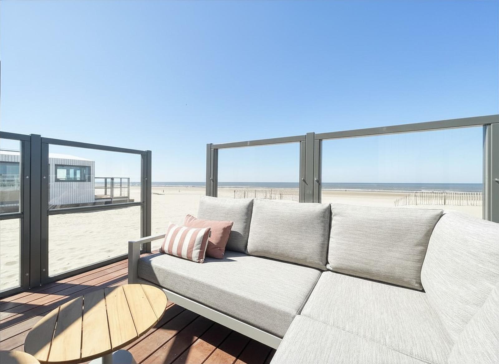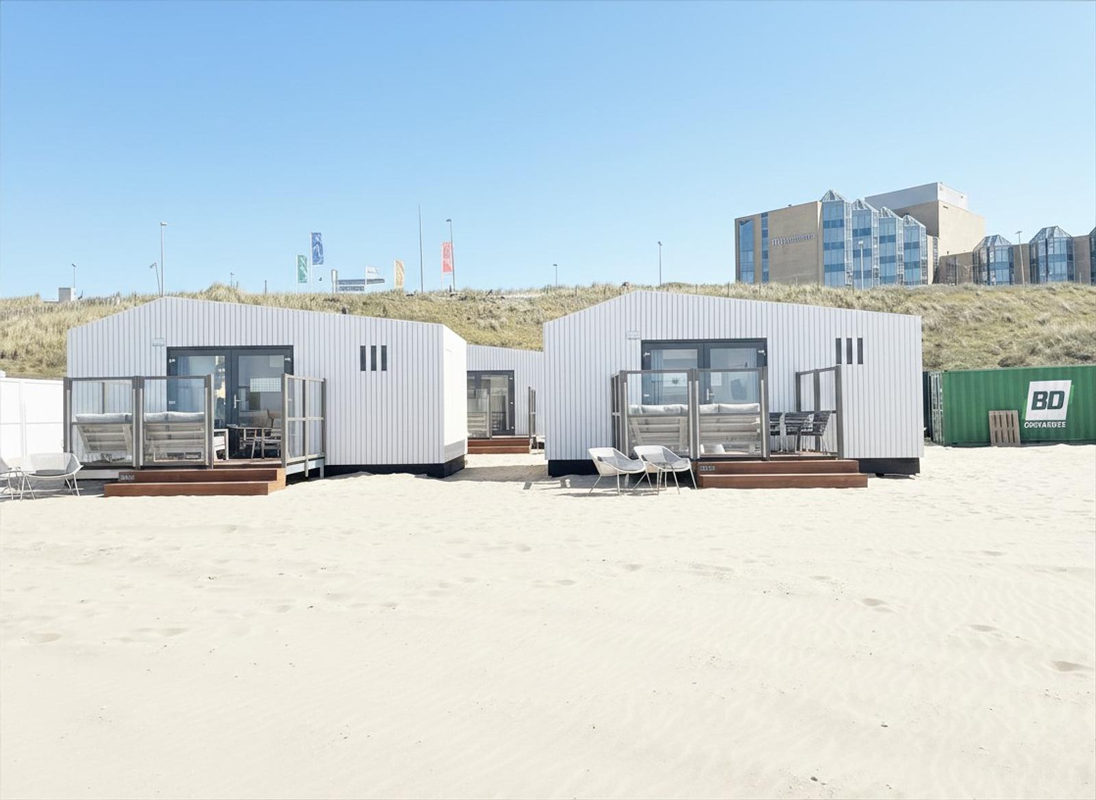 Huisje met zeezicht op het strand van Zandvoort aan Zee voor 4 personen met eigen badkamer en heerlijk terras.